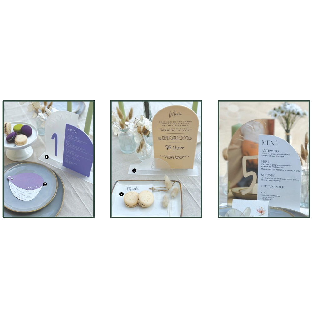 Tutto il necessario per completare il vostro giorno più bello: libretti messa, ventagli, conetti per il riso, Wedding Bag, menù, segnatavoli, segnaposto, Tableau de Mariage e Guest Book. Tutto coordinato dalla grafica che più si avvicina al vostro stile. E se nessuna grafica vi convince? Nessun problema. La creiamo!