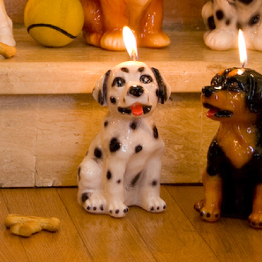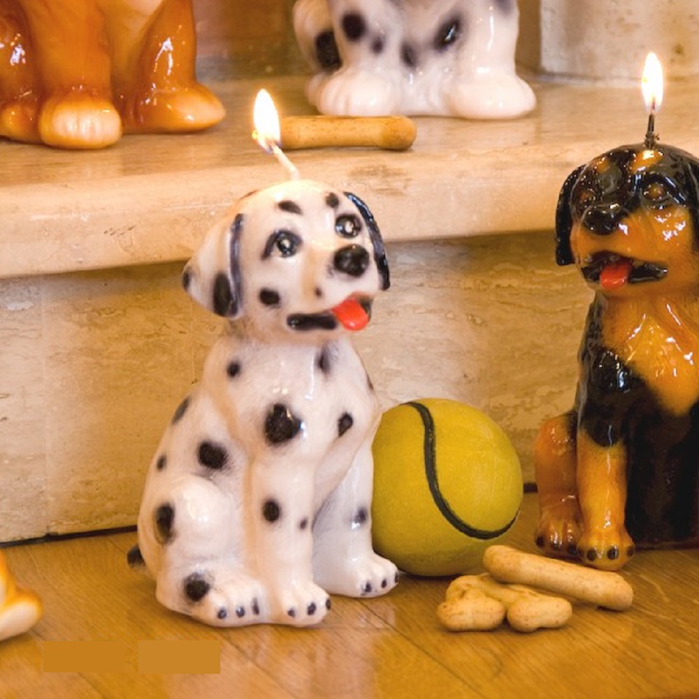 Candela lucida Dalmata bianco con macchie nere. Made in Italy