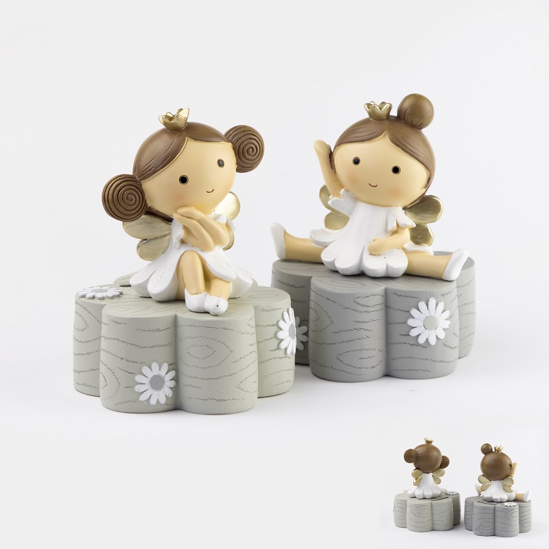 Linea composta da fata piccola, fata media, fata grande, salvadanaio fata, salvadanaio fata gigante, set 3 scatole tonde con 24 scatole e kit decorazioni. Modelli assortiti.