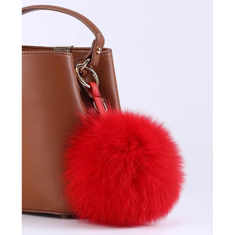 Portachiavi Pompon in pelliccia rossa con strass rossi applicati su striscia in similpelle rossa (non presenti nelle fotografie!)