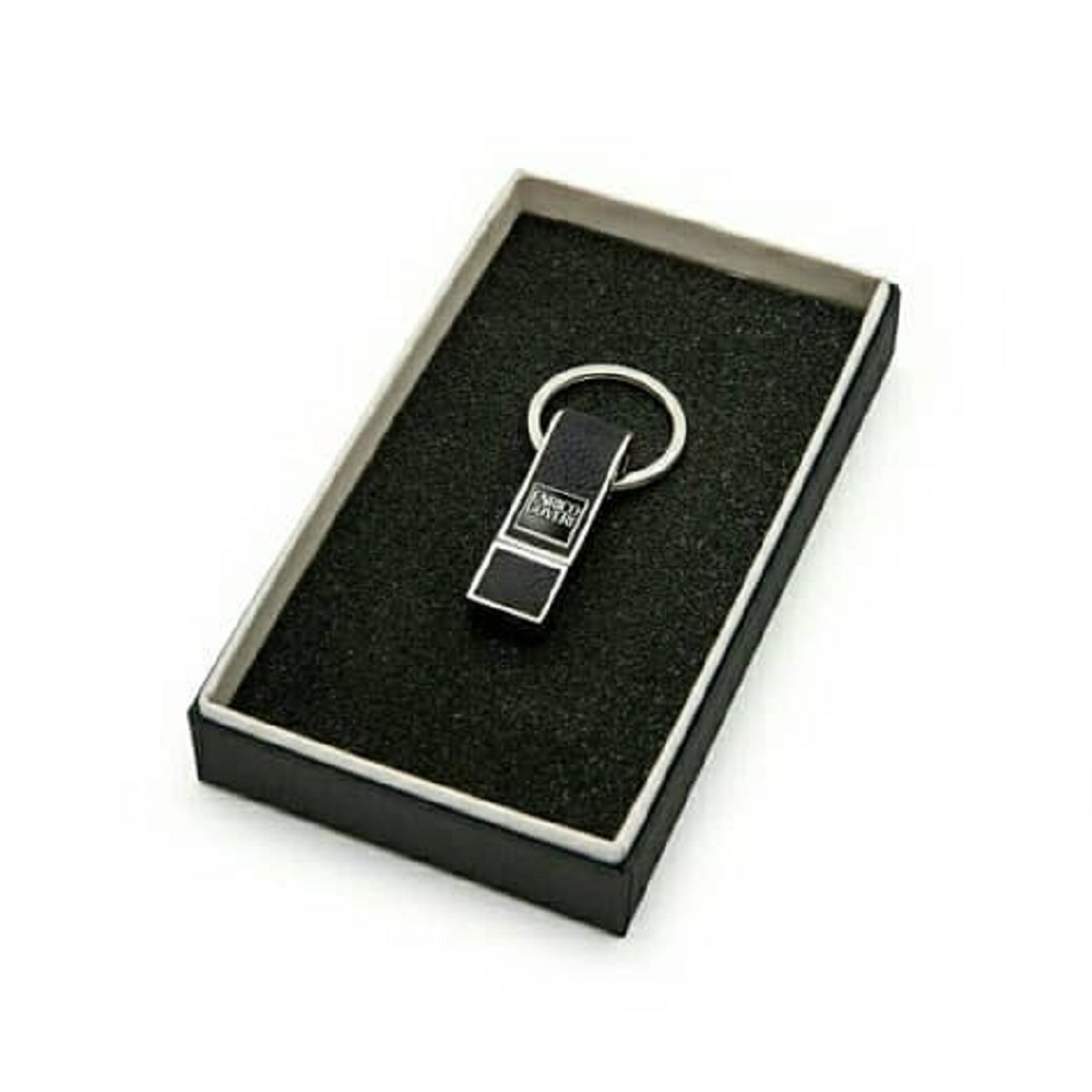 Portachiavi in acciaio con dettagli in similpelle nera e chiavetta USB da 4 GB