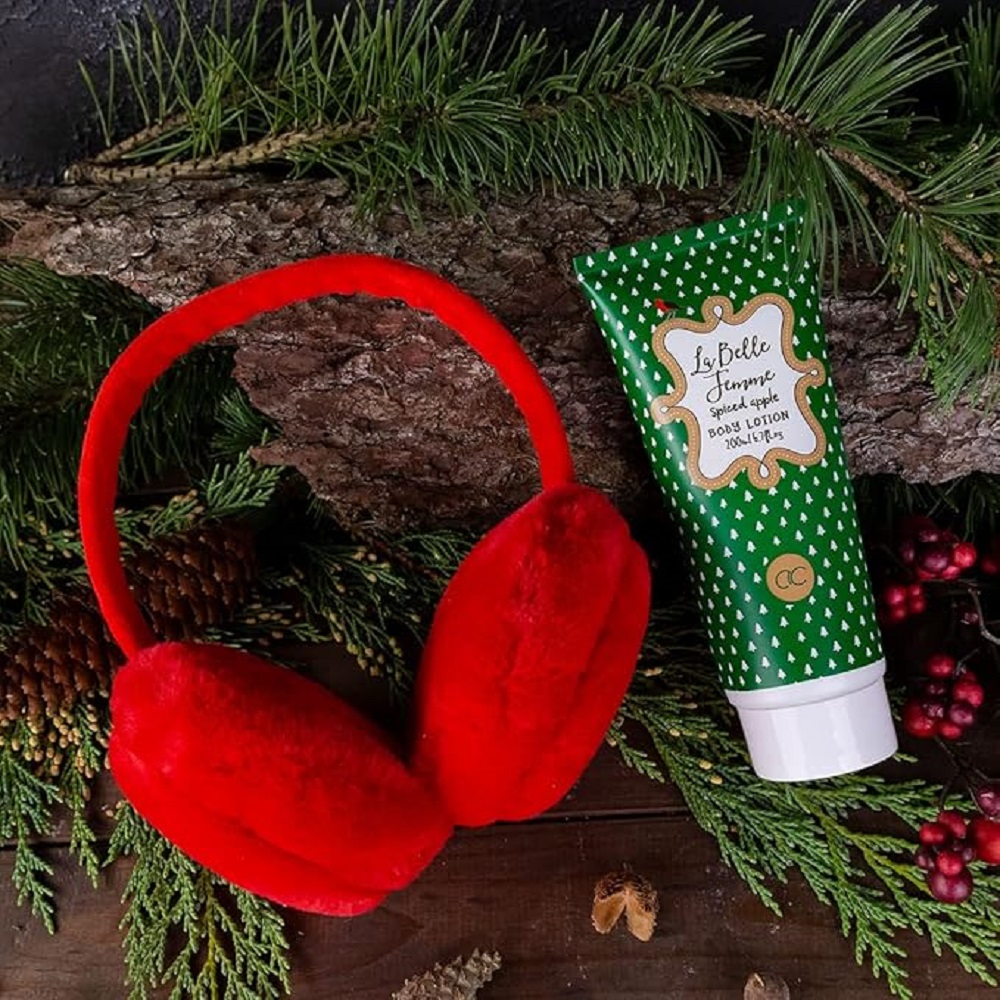 Set lozione corpo al profumo di mela speziata 200 ml e paraorecchie rosso
